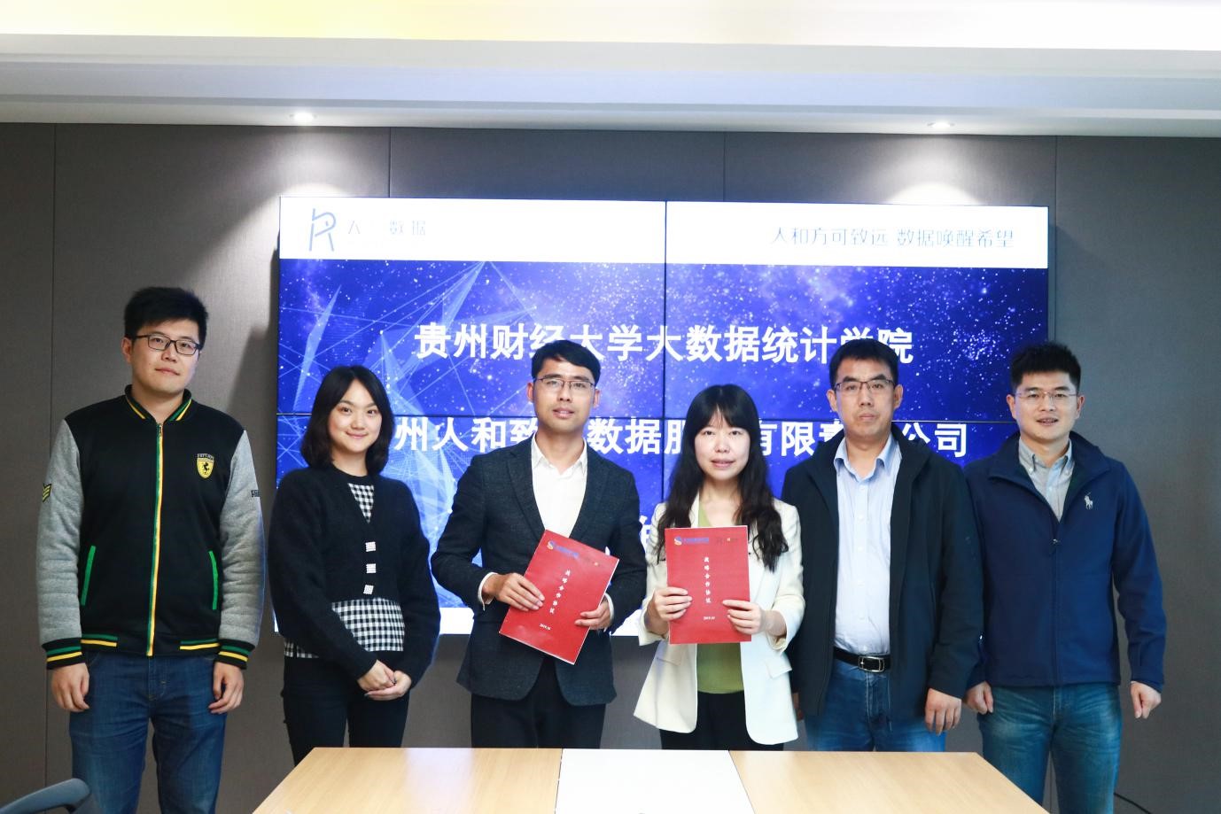 2019年10月21日,学院直属党支部书记鲁静芳、副院长于桂海、副教授胡杰赴贵州人和致远数据服务有限公司进行考察调研。鲁静芳书记代表学院与人和数据服务有限公司副董事长胡耀博士签署了《大数据统计学院与贵州人和致远数据服务有限公司战略合作协议》。