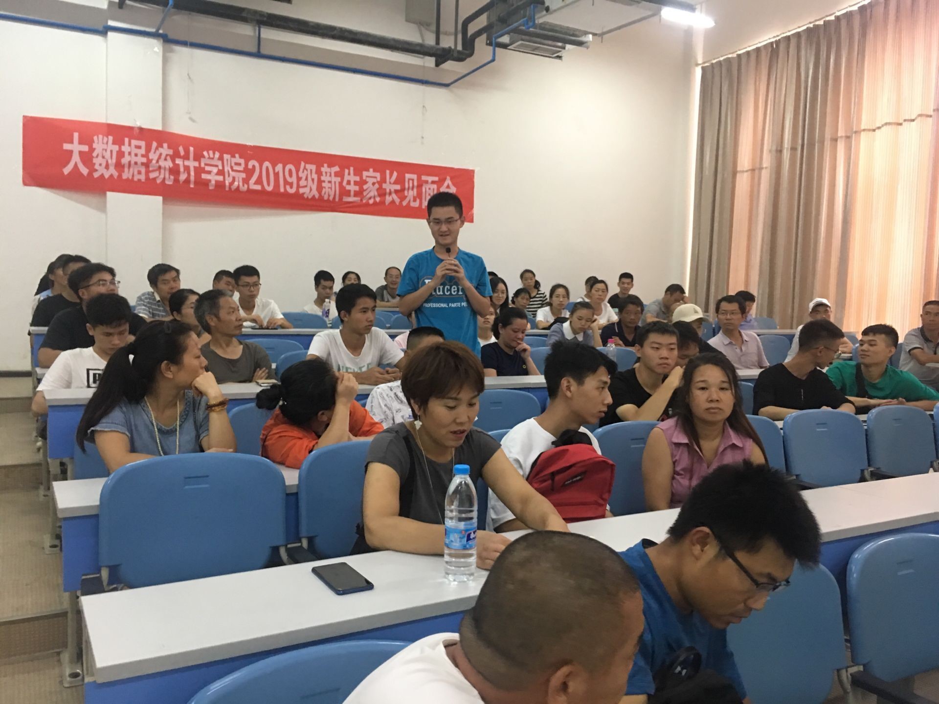 8月28日下午15:00,大数据统计学院2019级新生家长见面会在进学楼阶1-3召开,学院直属党支部书记鲁静芳、副院长张娥、于桂海(挂职)、学院郑惠匀、田宇老师、2019级新生及家长参加会议,本次会议由田宇主持。