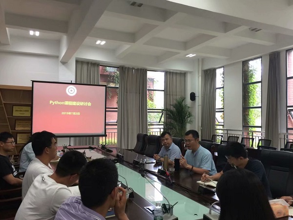 7月2号下午,大数据统计学院“Python课程建设研讨会”在修德楼107会议室举行。Python程序设计专家董付国副教授、副校长葛建军教授、大数据统计学院直属支部书记鲁静芳、副院长(挂职)张文专教授、专业负责人于桂海教授以及大数据统计学院全体专任教师参加了本次会议。会议由于桂海教授主持。