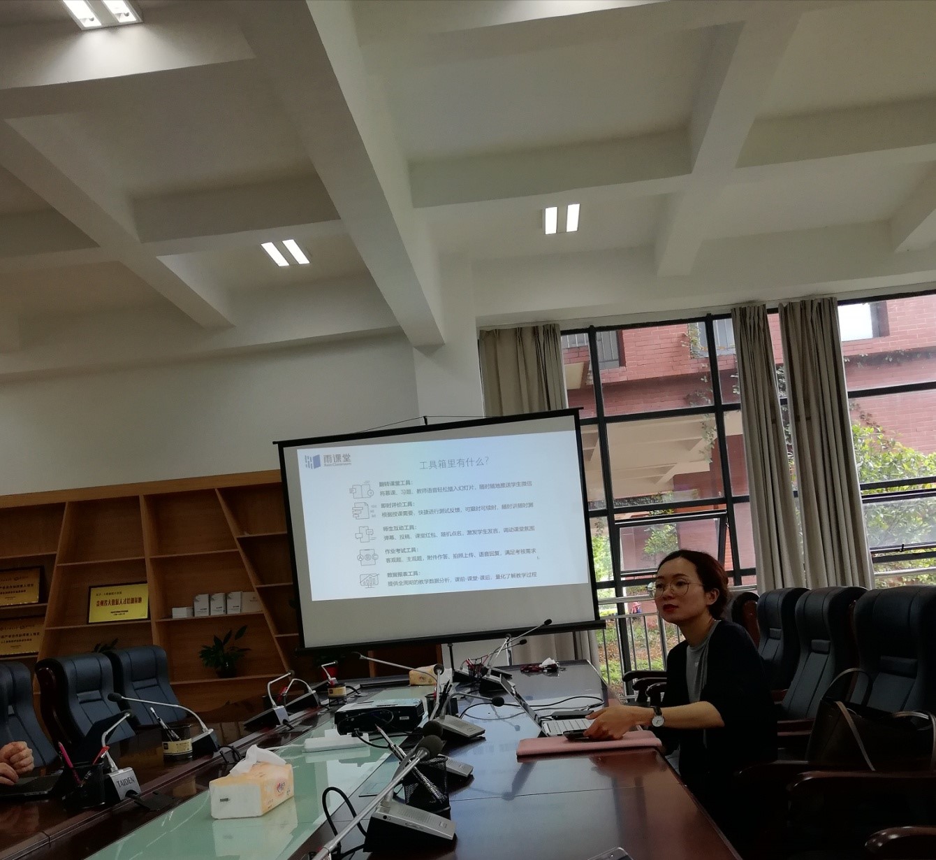 此次培训,培训老师介绍了雨课堂基本功能,现场演示了雨课堂在教学中的应用,并与教师进行了热烈的互动交流。与会老师们通过微信扫二维码进入雨课堂小程序,参与了在线签到、幻灯片推送、随机点名、参与问答互动、发送点评或弹幕、难点反馈、现场投票、现场答题统计分析等功能。