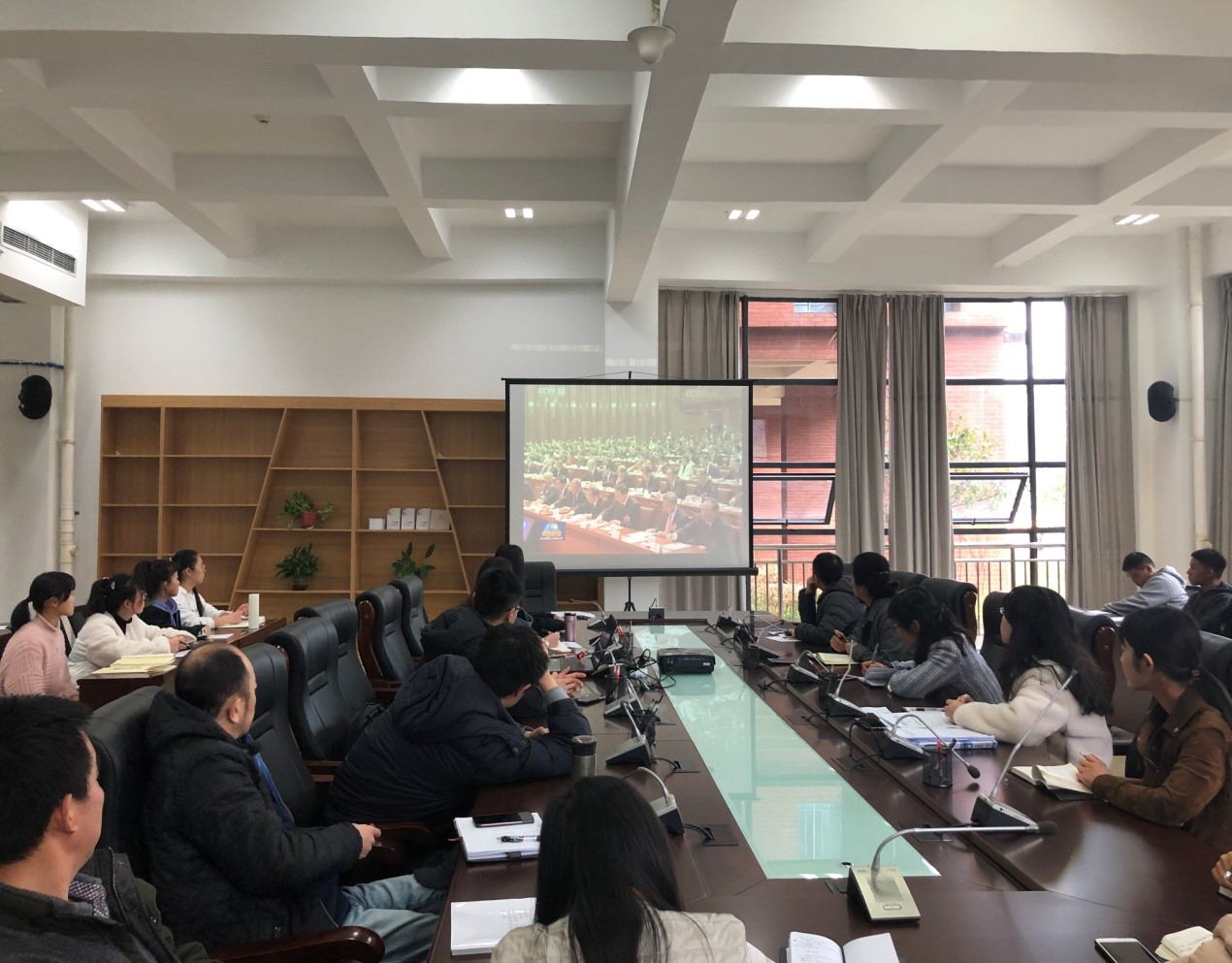2019年3月12日下,大数据统计学院全体师生50余人在修德楼107会议室观看了两会报道直播。通过观看和交流,全院师生通过两会了解了过去一年在以习近平同志为核心的党中央坚强领导下,国家各项事业、各方面工作取得的成绩。鲁静芳书记带头作了交流发言,她要求大家下去要认真学习两会精神,要把学习两会精神与做好本职工作结合起来、同推动学校发展紧密结合起来,务求实效。