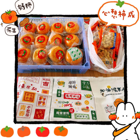 学院为全体考研学子精心准备了“好柿花生”礼品包,并赋予美好的寓意,祝福所有考研同学能够“逢考必过、超常发挥、心想事成、未来可期”。活动现场,鲁静芳、于桂海两位老师为大家发放礼品包并逐一为所有同学选择祝福语,给大家加油打气。于桂海提醒同学们,现阶段要劳逸结合,选择自己最舒适的方式调整好考前的心理状态,超长发挥。鲁静芳鼓励同学们踏入考场便是成功的第一步,祝福所有同学考入理想的院校,实现自己的梦想。