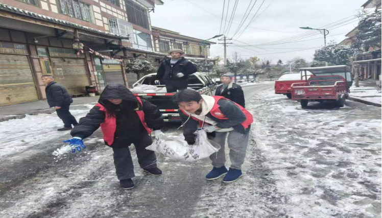 (志愿者同学参加贵州省遵义市务川县凝冻天气冻路撒盐活动)