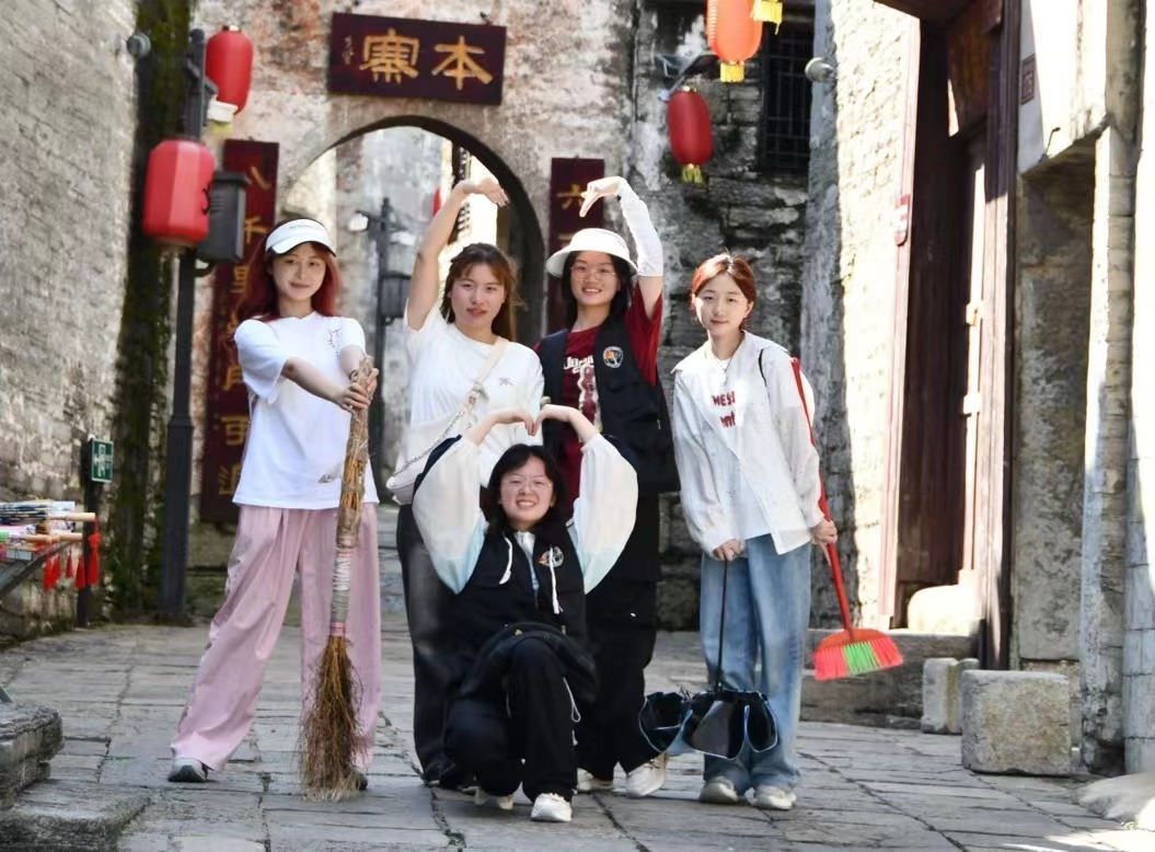 本寨村村支书金柏益书记以热烈的欢迎和殷切的期望迎接了师生们。他谈到本寨是一座沉淀了600年历史的"明代历史活化石",是孕育了屯堡文化的根脉宝地;并鼓励学生们将理论知识与实践相结合,以创新精神为屯堡文化的传承与发展贡献力量。在金书记的鼓舞下,学生们与当地村民携手,共同参与了本寨村的环境卫生整治,展现了青年的责任感与活力。