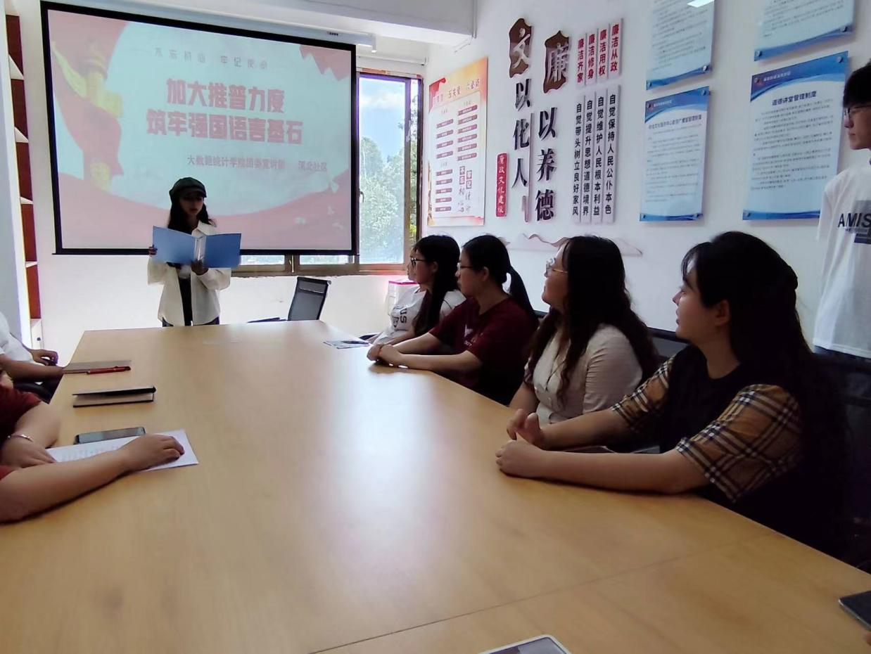 紧接着,宣讲团的同学们通过小品表演的形式,形象地表现贵州方言在生活中容易引起的误会,在活跃的气氛中将讲好普通话的意义生动地展现给参会居民,号召居民学普通话、说普通话,积极营造“说普通话,写规范字,用文明语”的良好氛围,增强居民自觉规范使用国家通用语言文字、自觉弘扬中华优秀传统文化意识。