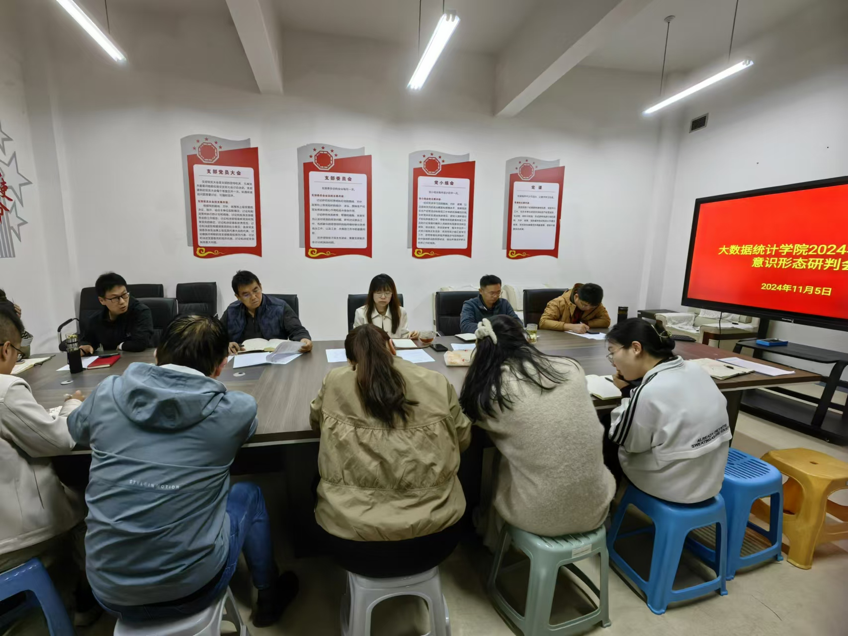11月5日,大数据统计学院召开2024年下半年意识形态研判会,会议由大数据统计学院党委书记鲁静芳同志主持,学院党委委员、各科室、各系负责人及教师代表参加。