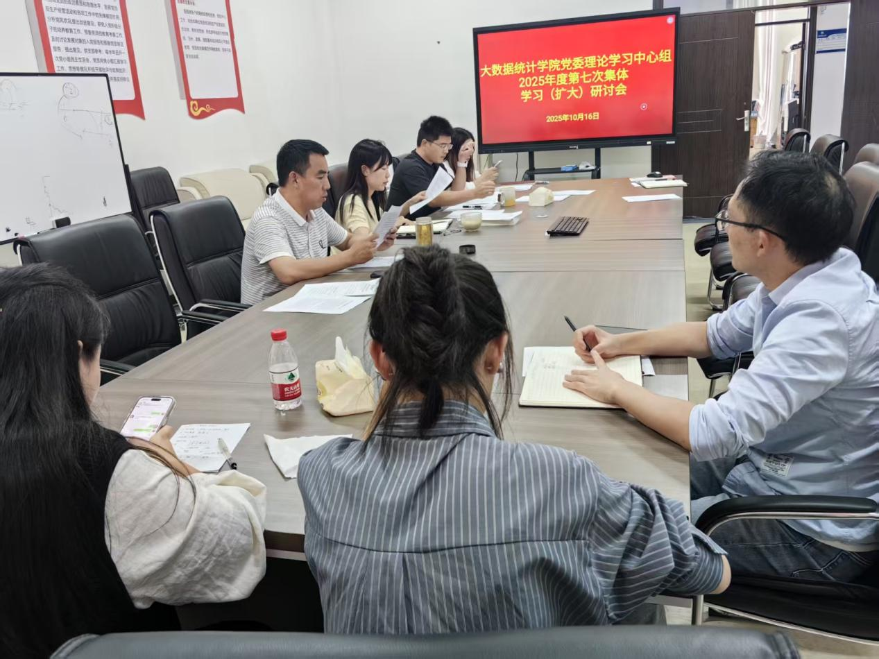 10月16日,大数据统计学院在修德楼206会议室召开党委理论学习中心组2025年度第七次集体学习研讨会。会议由大数据统计学院党委书记鲁静芳主持,学院党委委员于桂海、胡杰参加会议,各科室、各系部负责人列席会议。