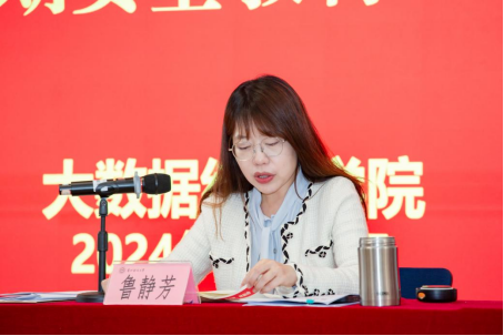 最后,鲁静芳同志发表了总结讲话,她首先对全体教职工在过去一年中对学院发展作出的巨大贡献表示了肯定和感谢,她指出,正是有了大家的辛勤付出,大数据统计学院才能在学科建设、人才培养和社会服务等方面取得显著成绩。她表示,本次大会是一次承前启后、继往开来的大会,也是一次团结奋进、共谋发展的大会。她希望全体教职工能够认真领会会议精神,把思想和行动统一到学院的发展目标上来,以更加饱满的热情和更加扎实的工作作风,共同推动大数据统计学院各项事业再上新台阶,为实现学院“十四五”规划目标而努力奋斗。