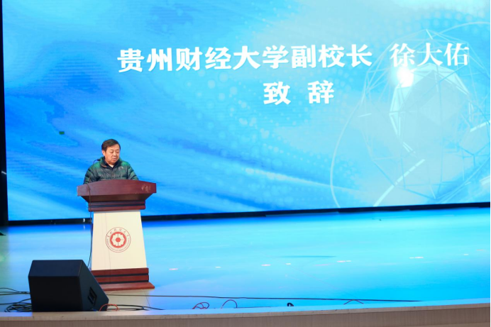 我校副校长徐大佑致辞,向莅临大赛决赛现场的领导、专家和来宾表示热烈的欢迎,并致以衷心的感谢。他在致辞中介绍,2015年,贵州省统计局与贵州财经大学共同筹备举办了首届高校统计信息可视化大赛,并连续举办了八届大赛。随着大赛影响力的提升,参赛队伍也迅速壮大,今年全省共25所高校744支队伍参加。大赛为全省高校学生参与大数据统计社会实践提供了平台,推动了统计工作进高校、统计信息可视化,促进了高校学生统计知识和技能提升,为服务地方经济发展提供了人才保障。