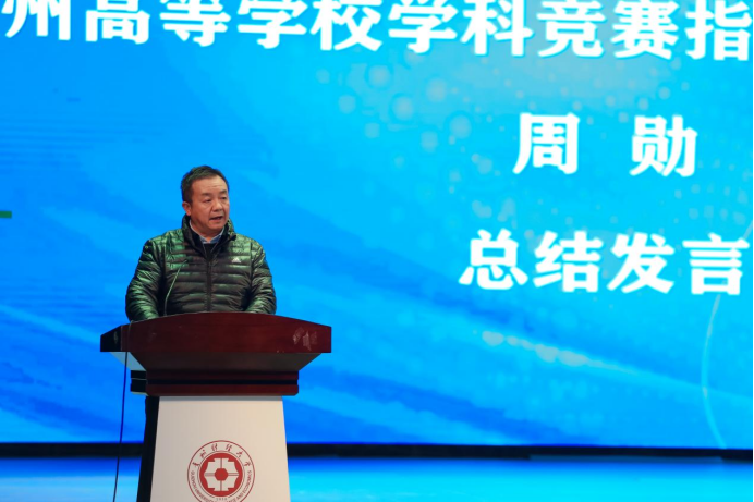 贵州高等学校学科竞赛指导委员会秘书长周勋作总结发言,他说,本届大赛各参赛队伍从不同层面、不同维度呈现了我省把握时代大势、服务国家全局、体现特色等方面的生动实践,充分展示了我省学生奋勉进取、勇于探索、敢于创新的精神风貌。同学们在大赛中收获了知识,提升了专业技能,形成了共同提高的良好局面。他希望,各高校继续高度重视各项学科竞赛,办好学科竞赛,推进学科竞赛向更多学科渗透,扩大学生覆盖面和受益面,让学科竞赛在培养学生的创新精神、协作精神和解决实际问题的能力方面发挥更强劲的作用。