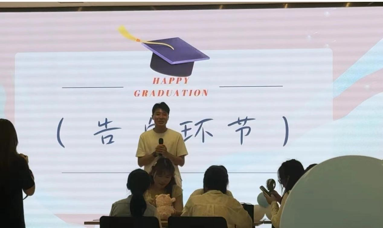 在感人至深的告白环节,毕业生们纷纷上台,表达了对同学、对学院的深厚感情。21级研究生万一博同学更是深情地表达了对导师于桂海副院长的感激之情以及对学院的依依不舍。