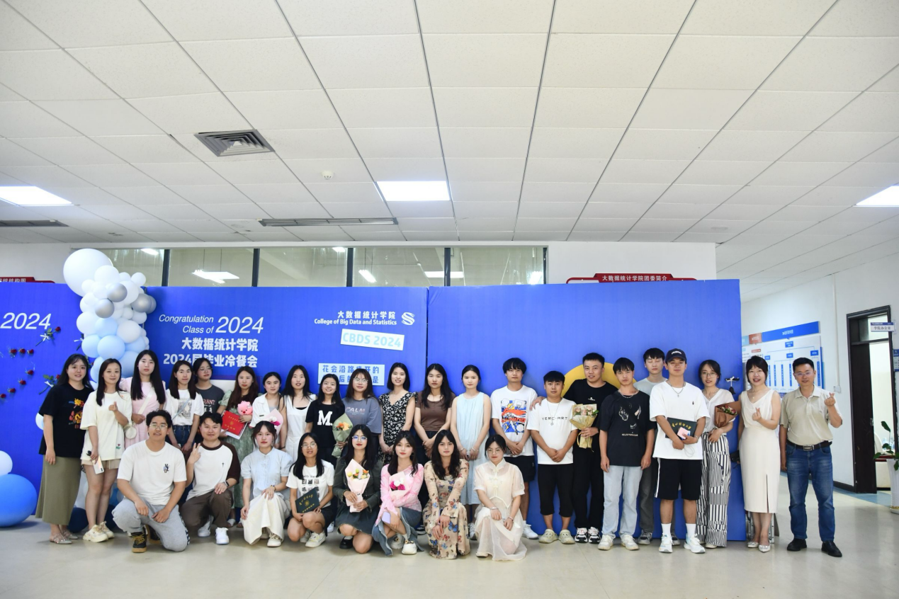 2024年6月21日下午3点,大数据统计学院2024届毕业生的冷餐会在修德楼218室隆重举行。学院的教职工、20级本科毕业生、21级硕士毕业生以及在校学生共120人齐聚一堂,共同庆祝这一难忘的时刻。