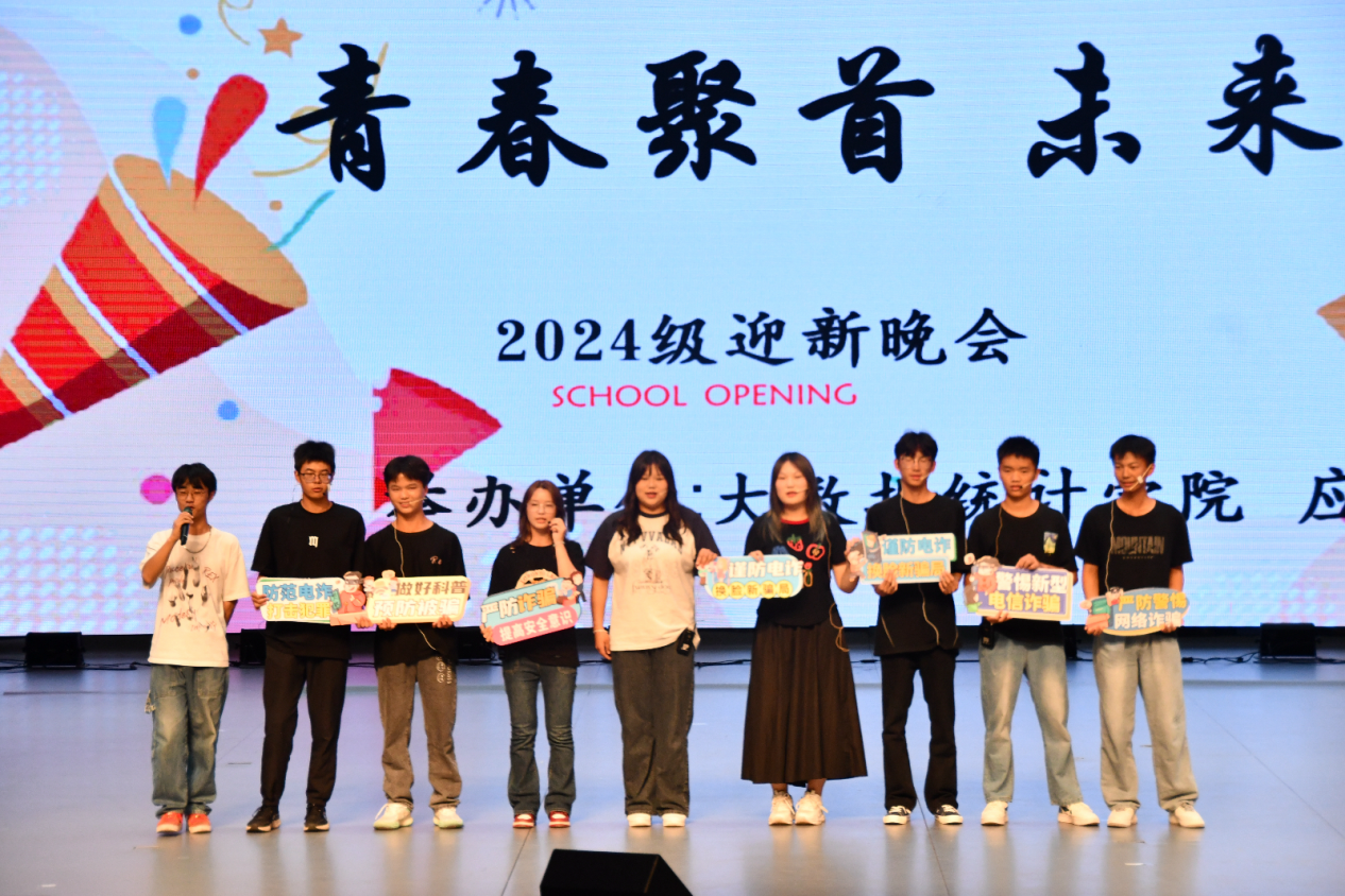 晚会伊始,大数据统计学院2024级经济统计学李锦瑞和应用经济学院2024级税收班程英凯作为新生代表分别上台发言,分享了他们对大学新生活的期待与展望。随后,街舞社K-pop的《Supernova》、应用经济学院合唱团的《我喜欢》以及红色舞台剧《我的1919》等精彩节目轮番上演,赢得了观众的阵阵掌声。