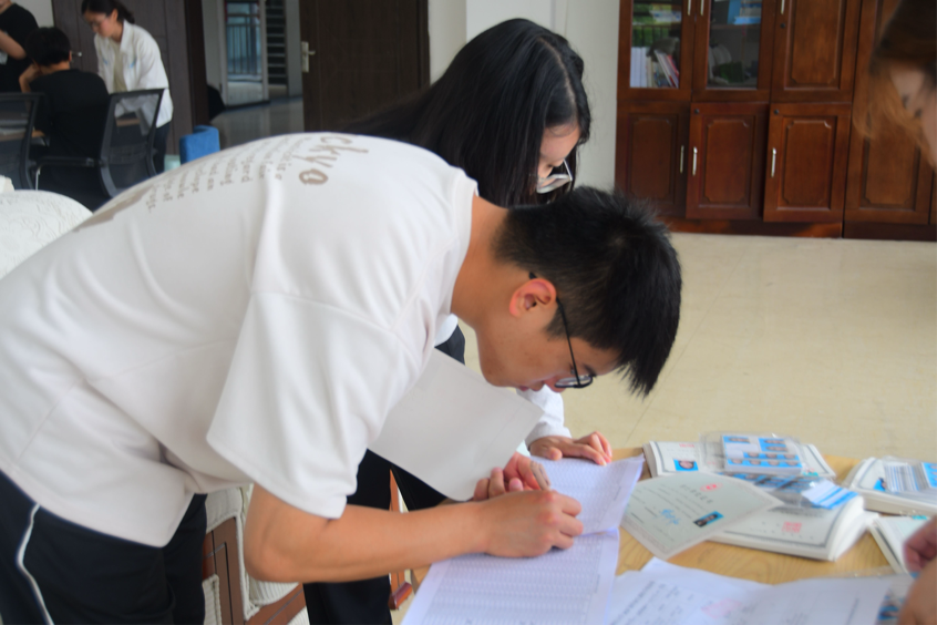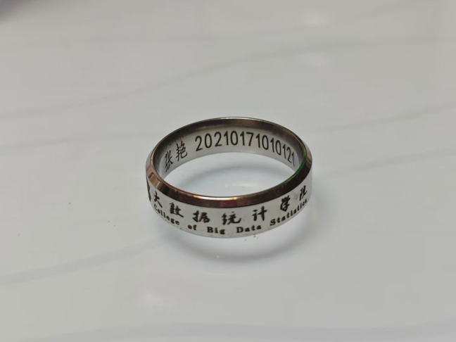 毕业典礼结束后,毕业生们回到学院领取毕业证和学位证,办理离校手续。学院为毕业生们准备了专属戒指作为特别礼物,戒指上刻有学生名字、学号及学院 logo,承载着学院的美好祝愿。此外,学院在正楼下设立了“我们毕业啦”打卡留念点,毕业生们纷纷拍照留念。2021 级大数据管理与应用专业李倩同学表示,回到学校领毕业证让她再次对学院产生不舍,学院领导和老师们用心付出,让她十分感动。