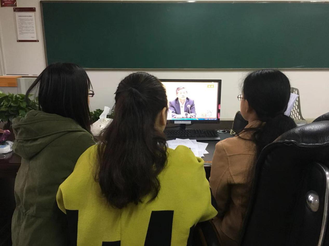 大数据统计学院部分教职工在家里自行观看关于“新时代学习大讲堂”第十期时代前沿知识专题讲座。