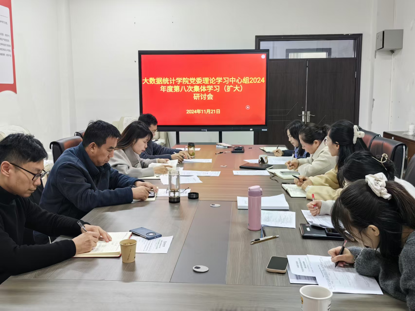 11月21日,大数据统计学院在修德楼206会议室召开党委理论学习中心组2024年度第八次集体学习(扩大)研讨会。学院全体党委委员参加学习研讨,各科室、各系部负责人列席会议,会议由党委书记鲁静芳主持。