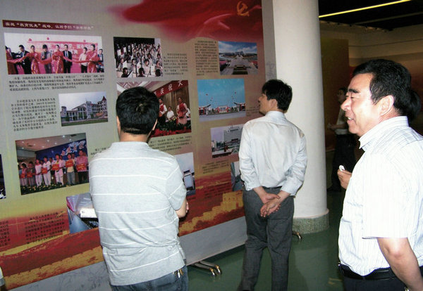 根据济宁市委党的群众路线教育实践活动领导小组办公室统一要求,5月20日,我校处级以上领导干部到市博物馆参观了济宁市践行党的群众路线图片展。