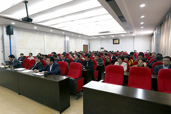 学校全体中层干部、部分骨干教师参加了报告会。(党委<院长>办公室)