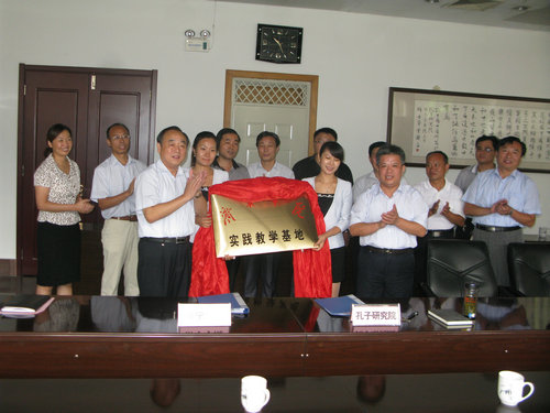 9月4日上午,我校实践教学基地签约暨授牌仪式在中国孔子研究院会议室隆重举行。我校党委委员、副院长朱松涛,孔子研究院院长杨朝明、纪委书记胡志平,我校教务处处长李传银、副处长王玉华,文化传播系党总支书记邓新民、系主任王传武等参加了仪式。