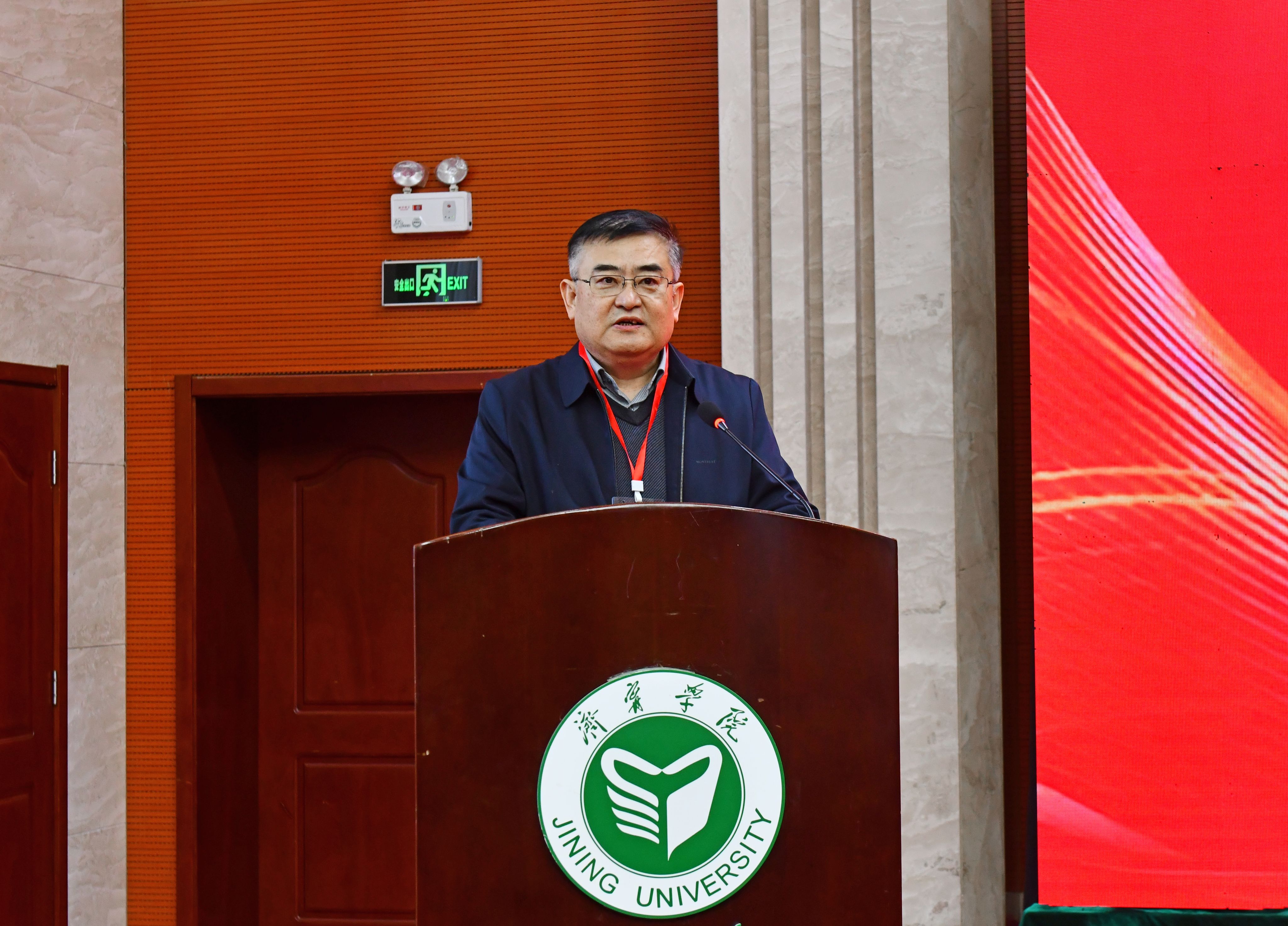丰家雷致欢迎辞。他代表济宁学院党委行政和全校师生向参加活动的退役军人部门各级领导、专家和嘉宾表示热烈欢迎,对多年来关注和支持济宁学院发展的社会各界人士表示衷心感谢。他简要介绍了学校的办学历史、学科专业、师资队伍、人才培养以及退役军人培训情况。他指出,学校主动对接山东省退役军人事务厅和济宁市退役军人事务局承接退役军人培训项目,迄今为止已成功举办了六期培训班,助力退役军人顺利实现从部队到地方的角色转变。此次活动的举办,是学校深化退役军人培训工作、拓展服务领域的重要举措。他表示,学校将深化与政府、企业等社会各界的合作,共同探索退役军人培训新模式,为退役军人提供更加全面、专业的培训服务,与退役军人一路同行,以AI赋能,以教育圆梦,共同书写退役军人高质量就业创业的辉煌篇章,为巩固发展军政军民团结大好局面、推进中国式现代化建设贡献济宁学院的智慧和力量。