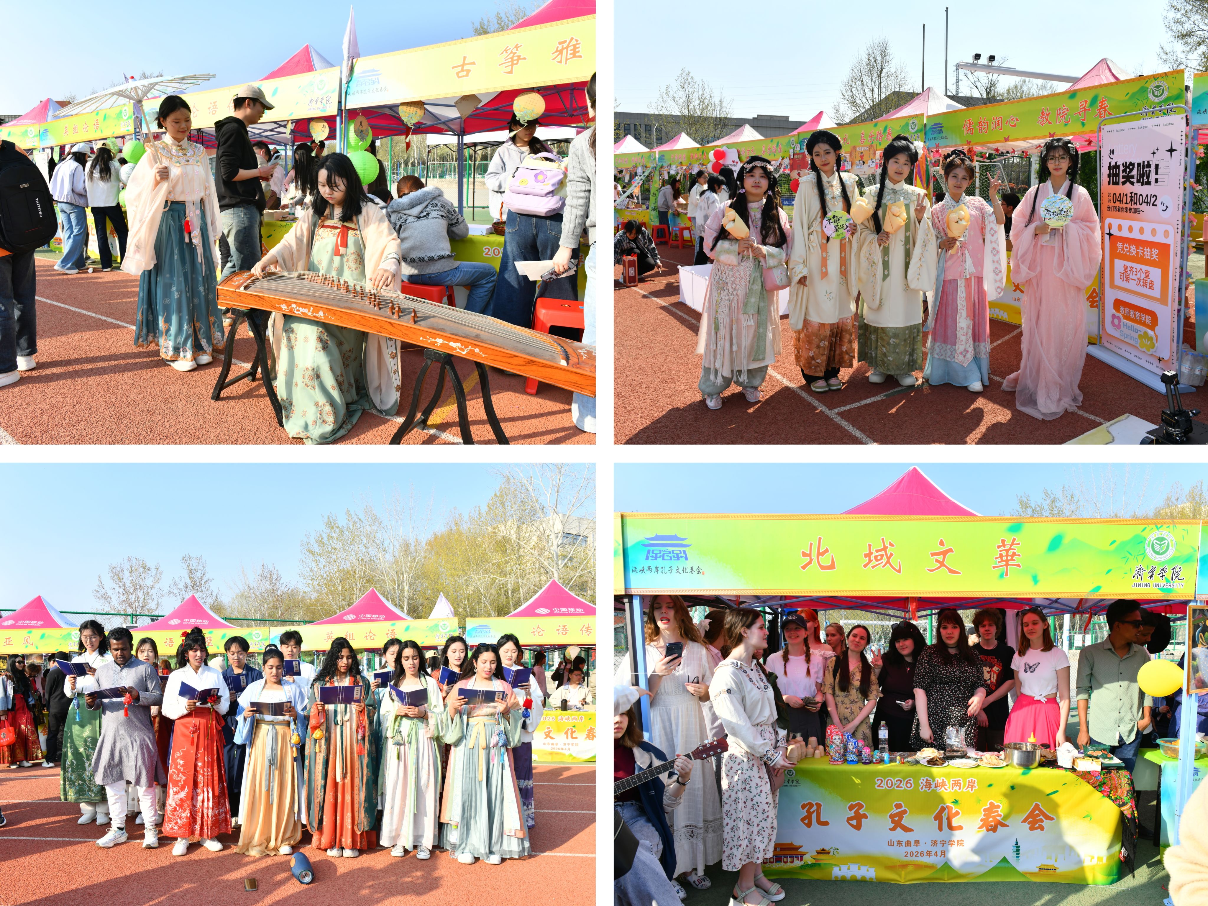 4月1日下午,2026海峡两岸孔子文化春会礼乐嘉年华暨2026山东高校论语大会启动仪式在济宁学院隆重举行。孔子第79代嫡长孙、至圣孔子基金会会长、济宁学院名誉校长孔垂长,至圣孔子基金会执行长陈泰旭,尼山世界儒学中心(中国孔子基金会秘书处)党委委员、副主任刘皓,北京师范大学中国公益研究院院长王振耀,台湾东吴大学教授李克明,台北市立大学教授张晓生,济宁学院党委书记仲红波,党委副书记、校长王清明,山东教育电视台党委委员、副台长陈本刚,曲阜文化建设示范区党工委副书记、推进办主任朱湘华,济宁广播电视台党组副书记、总编辑尚朋,济宁银行党委委员、副行长刘志刚,我校领导丰家雷、赵明、孔繁润、张永强、刘克非出席活动,学校各单位部门负责人、师生代表以及200余位台湾嘉宾应邀参与此次盛会。