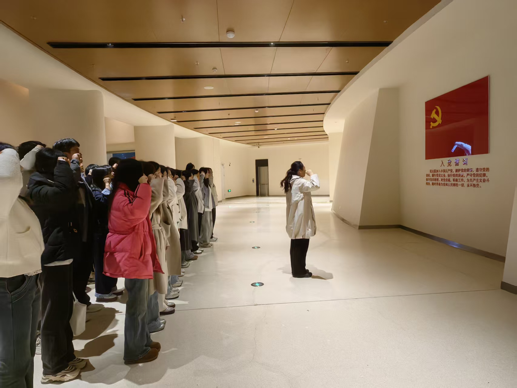 活动现场,新发展党员面向党旗庄严宣誓,老党员重温入党誓词。铿锵有力的誓言回荡在展厅,既是对革命先烈的深切缅怀,也是对初心使命的坚定坚守,进一步强化了党员们的责任担当与党性修养。