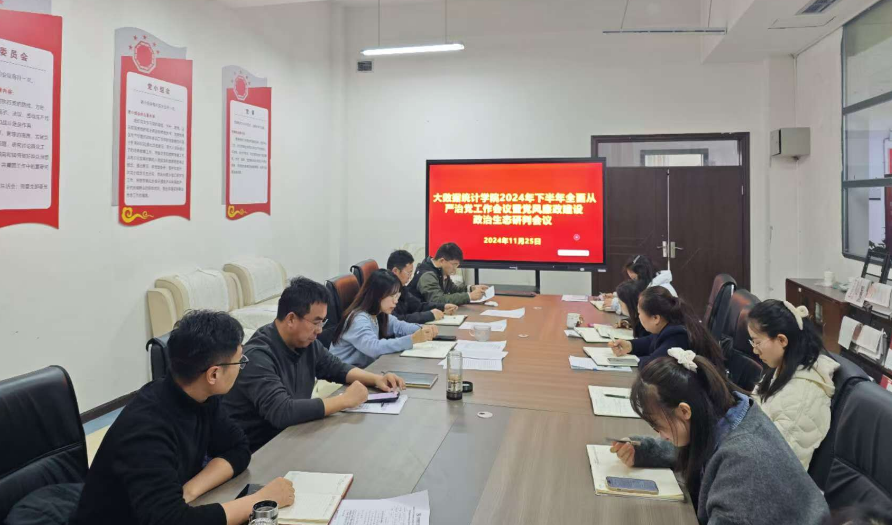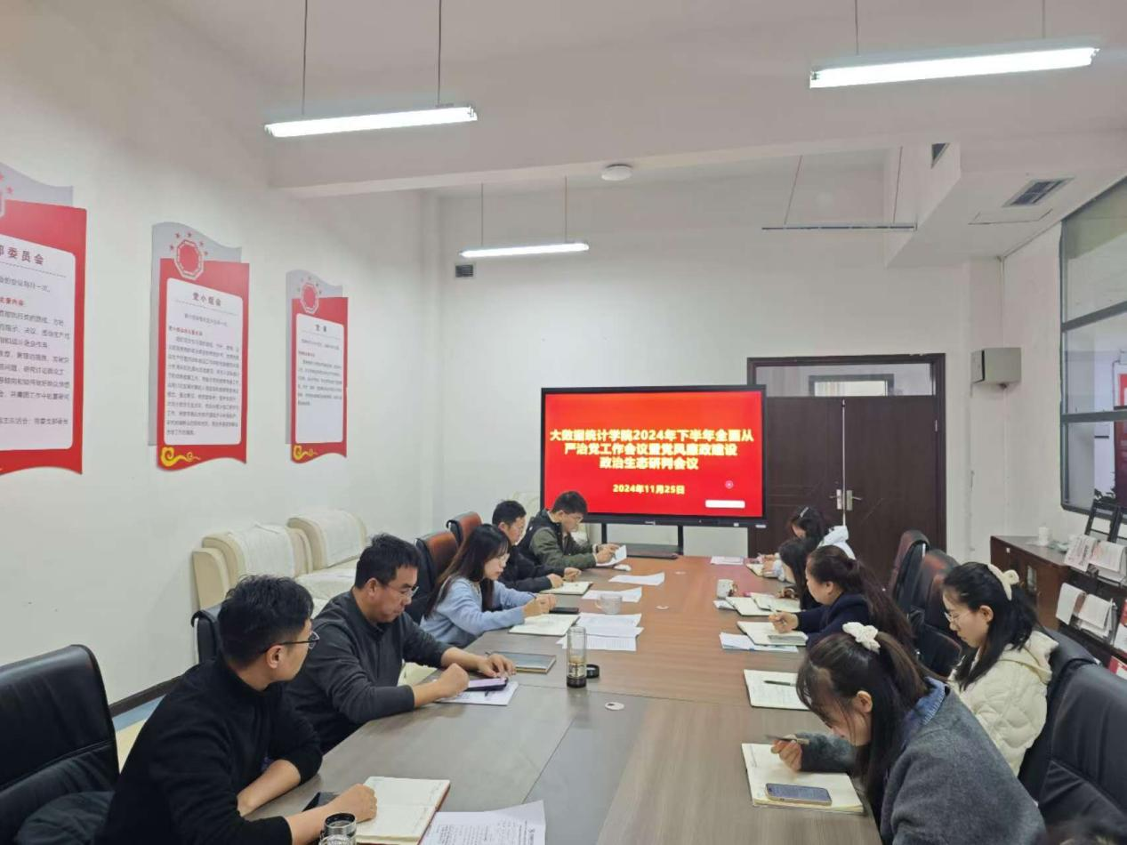 11月25日上午,大数据统计学院党委2024年下半年全面从严治党会议暨党风廉政建设专题会议在修德楼206会议室召开,学院全体处级干部、各科室(系)负责人参与此次会议,会议由党委书记鲁静芳同志主持。