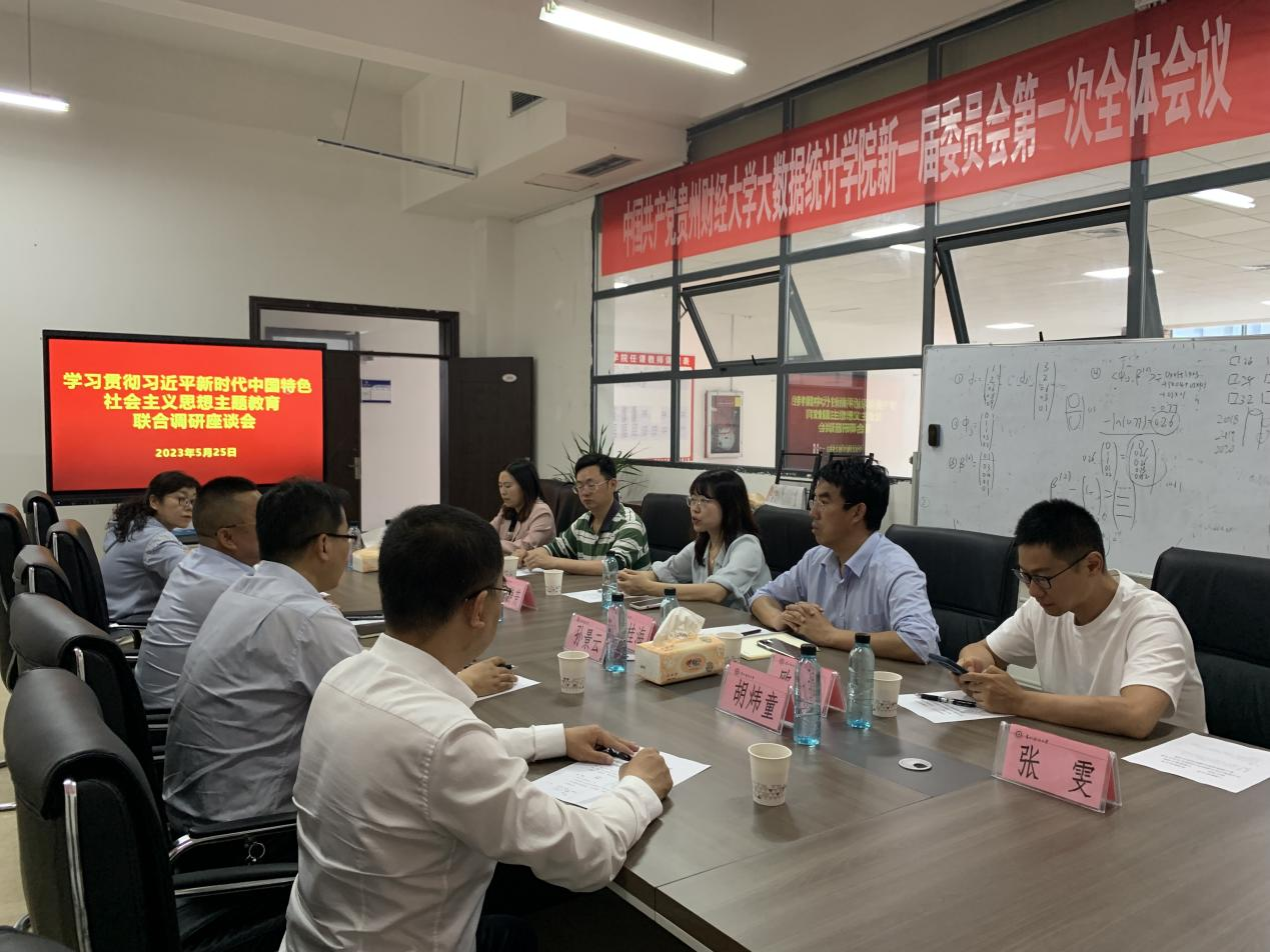 为深入开展学习贯彻习近平新时代中国特色社会主义思想主题教育,5月25日下午,贵州财经大学大数据统计学院与兰州财经大学统计学院在修德楼206会议室,联合召开主题为“推进党建与业务工作互融共促 推动学院高质量发展”专题调研座谈会。