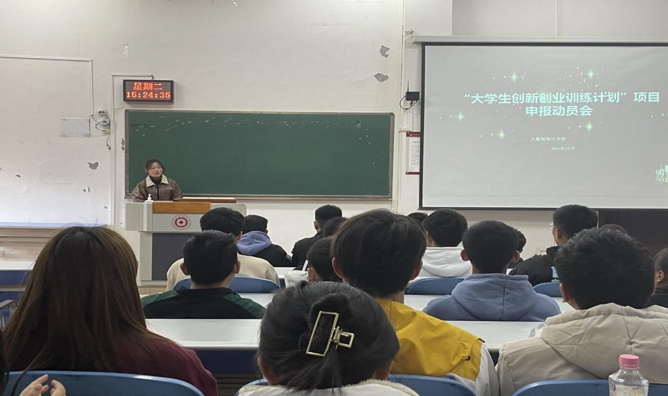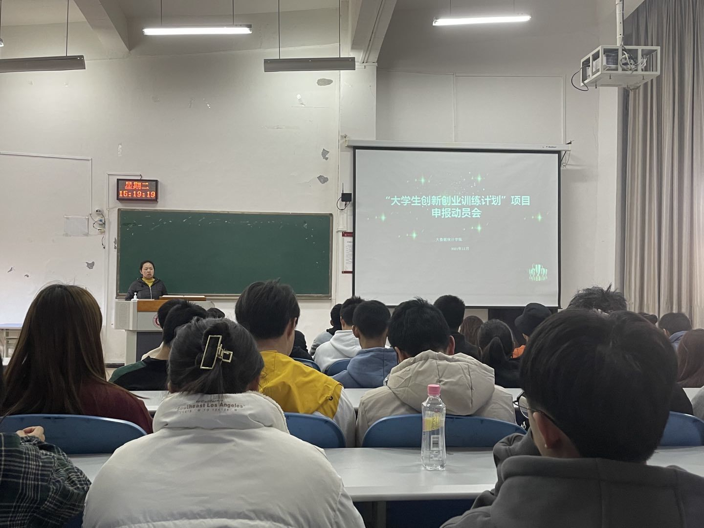 11月30日,大数据统计学院在进学楼举行“大学生创新创业训练计划”项目申报经验分享会。大数据统计学院2019级、2020级、2021级学生参加会议。教务办公室老师舒瑜主持会议。