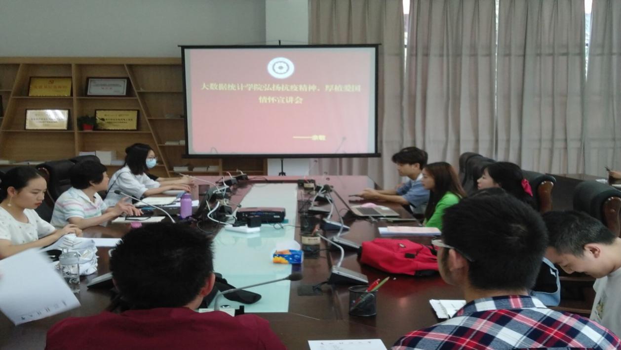 为了弘扬抗疫精神,培育青年学生的爱国情怀,大数据统计学院于7月15日在修德楼107会议室举办了“弘扬抗疫精神,厚植爱国情怀”宣讲会,大数据统计学院全体本科生参加了本次宣讲。
