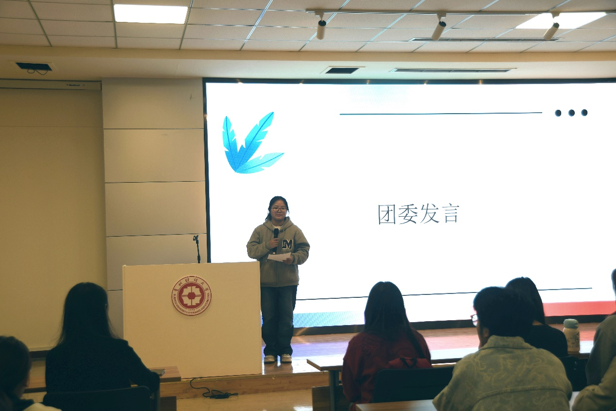 本次会议中团委代表朱睿怡、学生会代表王宇阳以及数智鼎新社代表罗倩分别发言。他们针对三大学生组织的人员组成、工作分工、要求以及未来发展方向进行了汇报,对新成员加入学院三大组织表示了热烈欢迎。