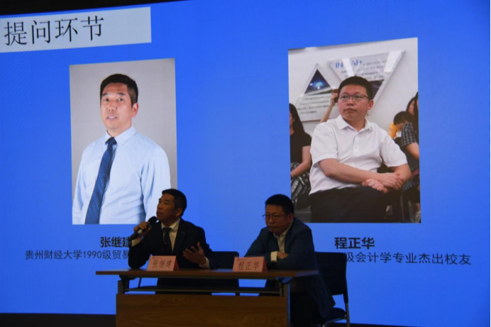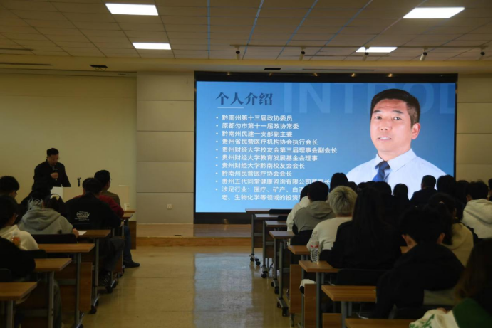 2024年4月9日,贵州财经大学团委秉承“立德树人,以人为本”的教育理念,携手合作促进处、大数据统计学院以及现代康旅产业学院,在修德楼218室成功举办了“四进”校园之——“企业家进校园”活动。特邀贵财1990级校友、贵州五代同堂健康咨询有限公司董事长张继建先生,以及贵财2000级校友、贵州乐诚技术有限公司创始人程正华先生作为主讲嘉宾,校团委书记雍新艳、大数据统计学院党委书记鲁静芳、大数据统计学院副院长于桂海、合作促进处副主任贺婷,以及二百余名学生参加了此次活动,现场由大数据统计学院正处级专职组织员陈波主持。