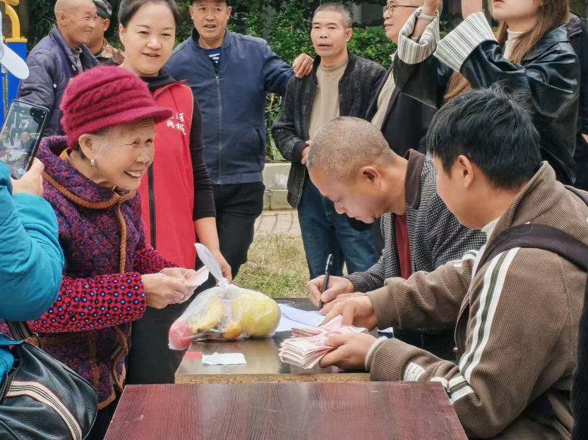 活动现场,花溪区青岩镇大坝村村委会为60至90岁的老人发放了高龄补贴,依据不同年龄段给予相应金额。老人们脸上洋溢着幸福的笑容,纷纷表达由衷的感激。有人动情地说:“很感谢社区一直以来的照顾,国家政策越来越好,让我们高龄老人生活更有依靠。”也有人表示:“志愿者们的关心让我们感受到被重视、被牵挂,心里特别温暖。”