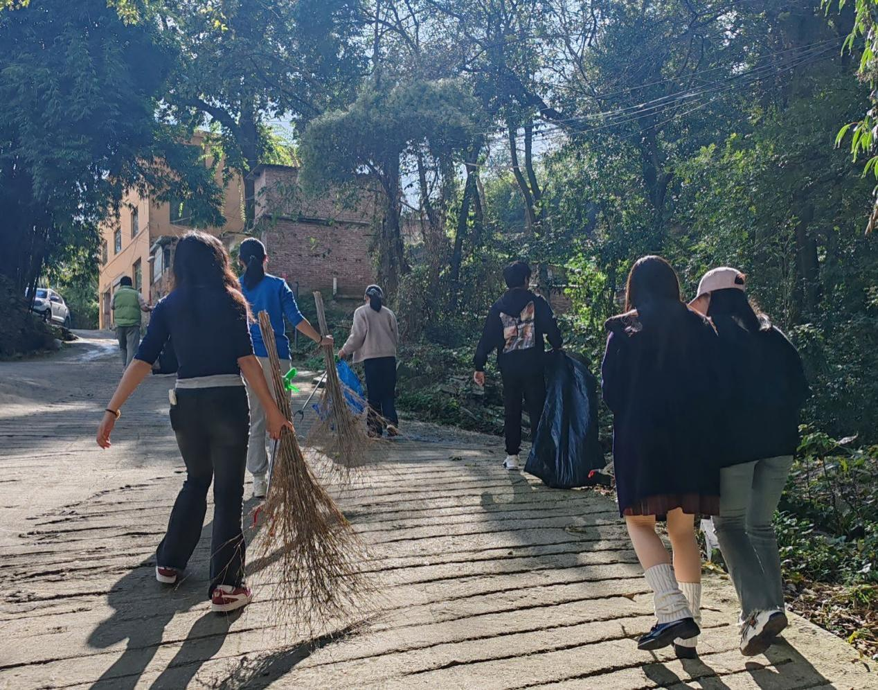 活动中,志愿者们在村干部的带领下分为两组,携带扫帚、铁铲、垃圾袋等工具,对村内主干道、文化广场、农户庭院周边及闲置空地的环境卫生进行清理。大家清扫落叶、清除杂草、打捞沟渠垃圾,协助村民整理农具和柴火,改善了村容村貌。不少村民也自发加入清扫队伍。