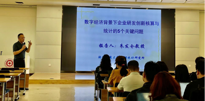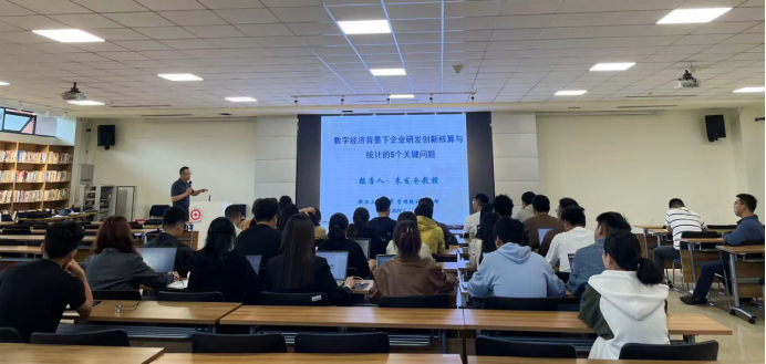 5月11日上午,浙江工商大学朱发仓教授莅临我院,在修德楼218开展了“学术立校”暨“数智大讲堂”学术讲座。于桂海副院长、胡杰副院长以及部分专任教师、全体研究生近40人参加了此次讲座,讲座由朱莉副教授主持。