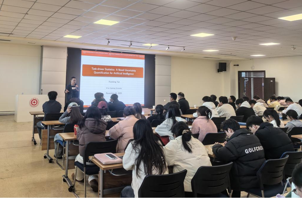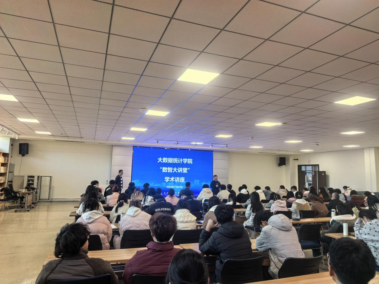 11月25日下午,西安交通大学严晓东教授莅临大数据统计学院“数智大讲堂”并作学术报告。讲座在修德楼218报告厅举行,大数据统计学院副院长于桂海,学院部分专任教师、25级数据科学班本科生及部分研究生共计70余人参加讲座。