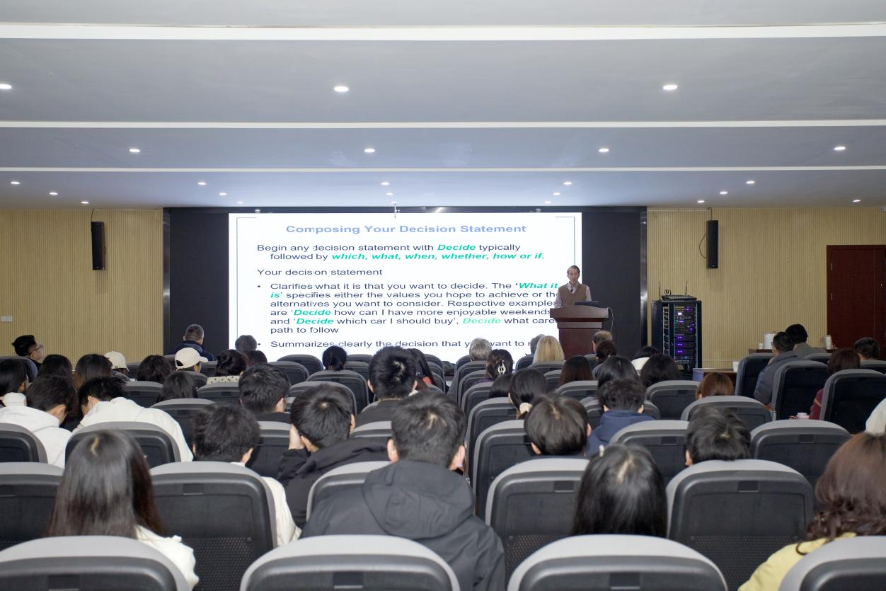 Ralph Keeney院士以《Improving Your Decision-Making Skills》为题,指出决策是人生核心技能,系统讲解了清晰陈述决策问题、明确目标、创造备选方案三大决策核心要素,结合实验揭示了人们识别决策目标的普遍问题,还区分了决策问题与决策机会,分享了打造 “无法被拒绝的决策提案”等实用技巧。