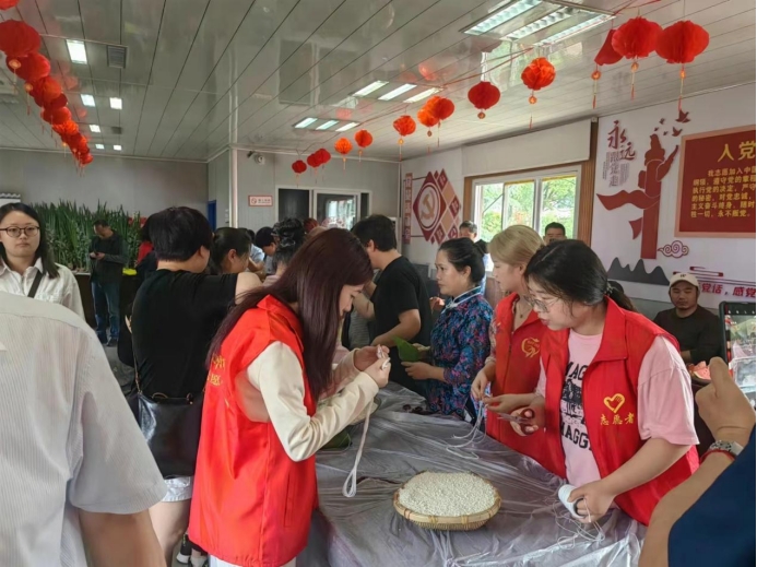 2024年6月6日,来自大数据统计学院21级经济统计学班团支部、22级经济统计学2班团支部、23级大数据管理与应用班团支部与23级经济统计学班团支部的15名志愿者在团委老师崔力丹的带领下,前往仙人洞社区开展“民族团结一家亲端午飘香‘粽’有情”志愿服务活动。本次活动旨在让同学们学习端午节的传统习俗,感受传统文化的魅力。