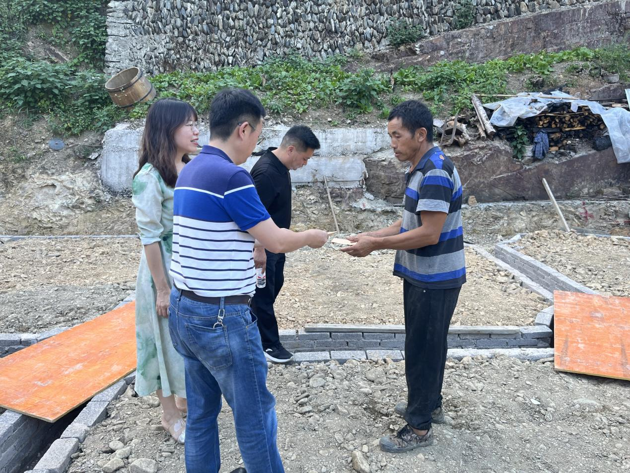 在与当地村支书周凤春和我院驻村书记杨汝云的座谈交流中,大数据统计学院了解到交密村目前面临的各种困难和问题。党委书记鲁静芳向村长和驻村书记表示将关注并积极寻求解决问题的途径和办法,并代表学院给驻村书记及村民赠送了办公用品及生活物资。最后,大数据统计学院一行在村支书的带领下前往受大火烧毁的三户农家进行走访和慰问。