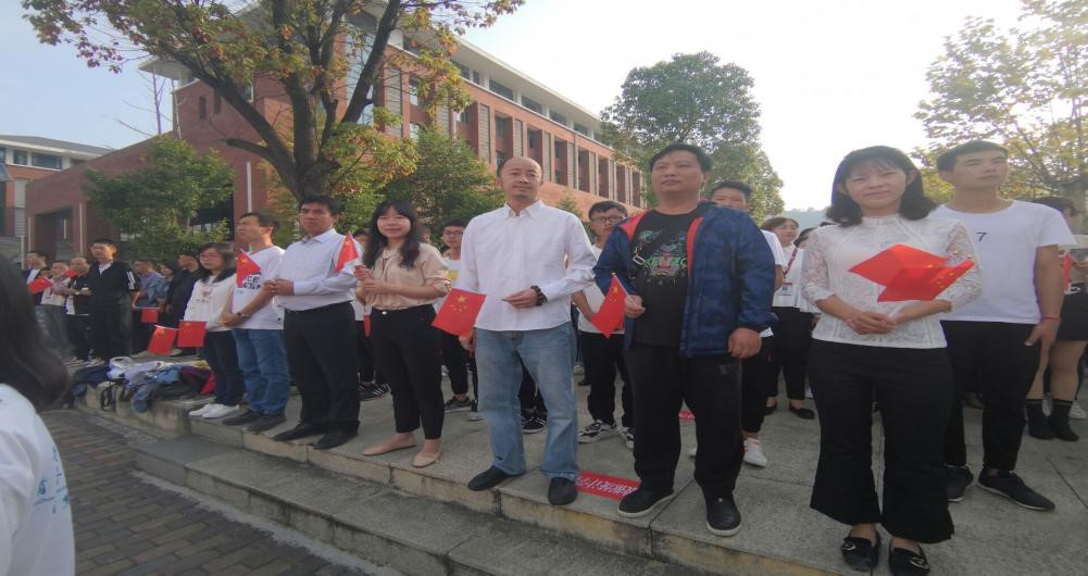 仪式最后,师生们舞动着手中的小国旗,饱含深情地齐声高唱《我和我的祖国》,用歌声表达对祖国母亲的深深爱恋和美好祝福。慷慨激昂的歌声响彻校园,震撼人心。