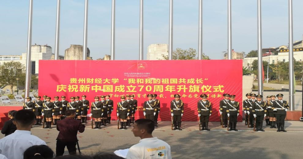 9月30日上午8:30-9:30,贵州财经大学在花溪校区正大门院士墙广场举行升国旗仪式,大数据统计学院直属党支部书记鲁静芳、副院长(挂职)于桂海、以及部分教师代表和学生代表参加了此次仪式。