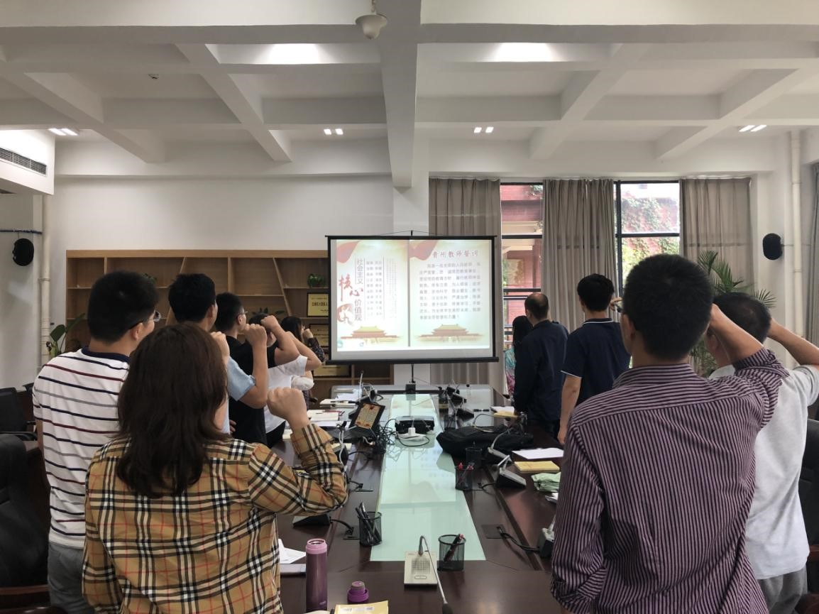 为进一步加强教师队伍建设,增强教师教书育人的责任感、使命感和荣誉感。2019910日,大数据统计学院全体教职工在修德楼107会议室开展了教师节宣誓活动。