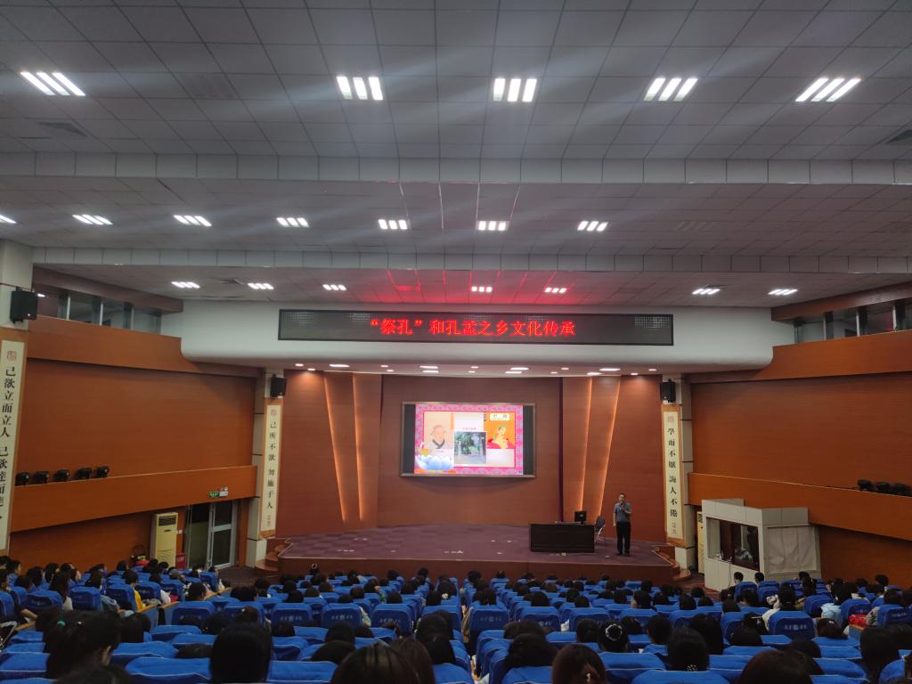 为加强新生传统文化和地域文化教育,增强文化自信和爱国爱校情怀,9月27日晚,外国语学院在理科楼报告厅举办《祭孔和孔孟之乡文化传承》传统文化专题讲座,讲座由该院党委书记陆波主讲,全体辅导员及2021级新生参加。