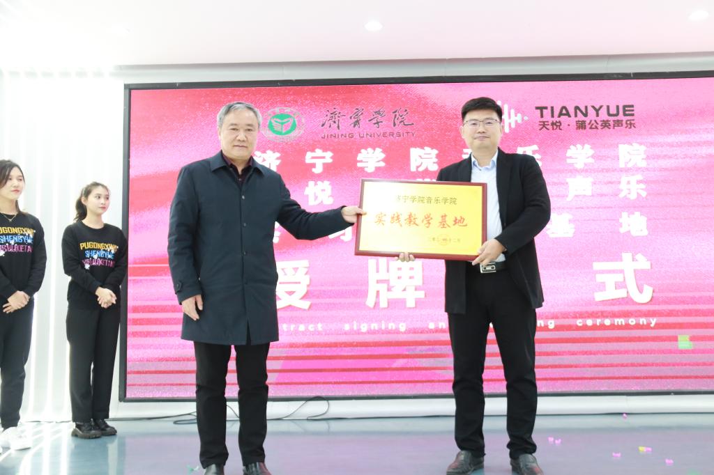 本次调研,达到了预期目的,音乐学院将根据师范专业认证标准,认真研究吸纳利益相关方提出的意见建议,修订完善现行人才培养方案,以师范生发展成效为导向,聚焦师范生毕业后“学到了什么”和“能做什么”,反向设计课程体系与教学环节,强化少儿声乐课程的教学,加强见习、实习环节等。最后,音乐学院党委书记葛修路与山东省蒲公英文化艺术发展有限公司董事长马培清在全体员工的见证下签订了合作协议并授予实践教学基地牌匾。
