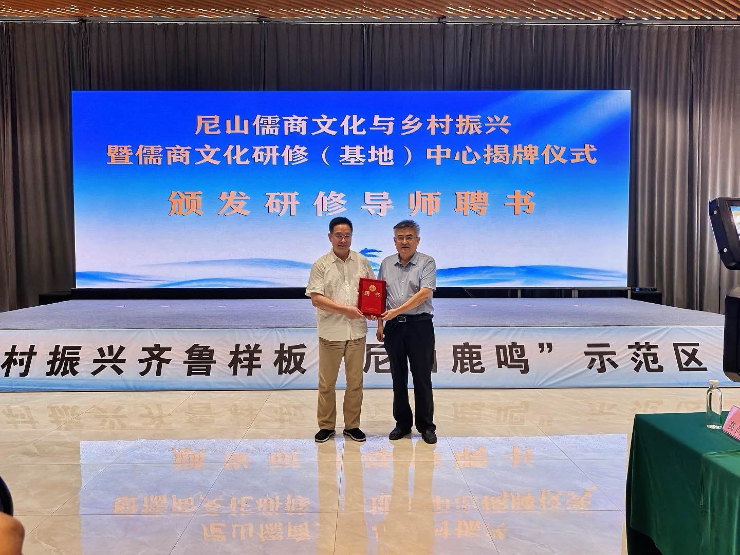 7月19日下午,“儒商文化与乡村振兴暨尼山儒商文化研修(基地)中心成立大会”在仲子故里,尼山脚下的泗水县尼山鹿鸣山庄隆重举行。本次活动由济宁学院、上海工商界爱国建设特种基金会、曲阜文化建设示范区联合主办,上海众礼文化传播有限公司、上海胧爱文化传播有限公司、上海梓元集团有限公司、山东动脉智能科技股份有限公司、曲阜裕达建材有限公司、上海青创大学生创业服务基金会协办,泗水县文化和旅游局、泗水县优秀传统文化传承发展中心、中佳蓝海集团承办,旨在深入探讨儒商文化在乡村振兴中的创新应用,推动传统文化与现代乡村发展的深度融合。