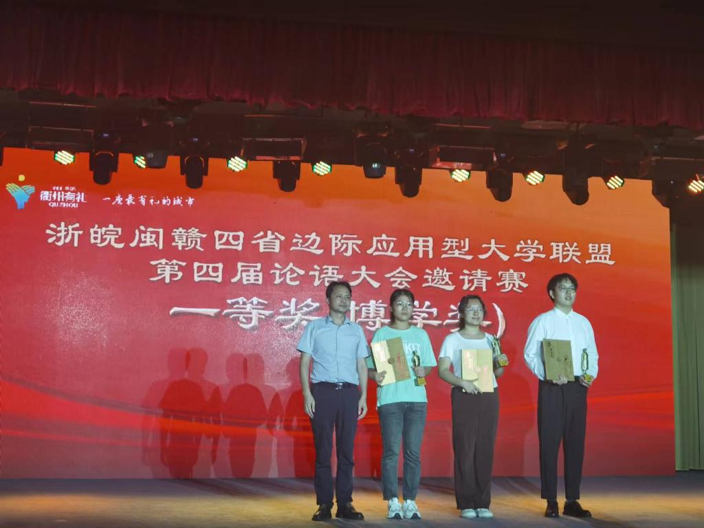 9月24日,浙闽赣皖四省边际应用型大学联盟第四届“论语大会”比赛在浙江省衢州市举行。特邀参赛的济宁学院代表队,同衢州学院、黄山学院等8支南方院校代表队以及曲阜师范大学代表队经过四个环节的激烈角逐,由我校人文与传播学院2022级历史学专业学生柳婷、2022级汉语言文学专业学生王新臻和儒商学院2022级行政管理专业学生丁一组成的济宁学院代表队,在人文与传播学院教师、《论语》研究教学名家田耕指导下,获得赛事一等奖第一名。