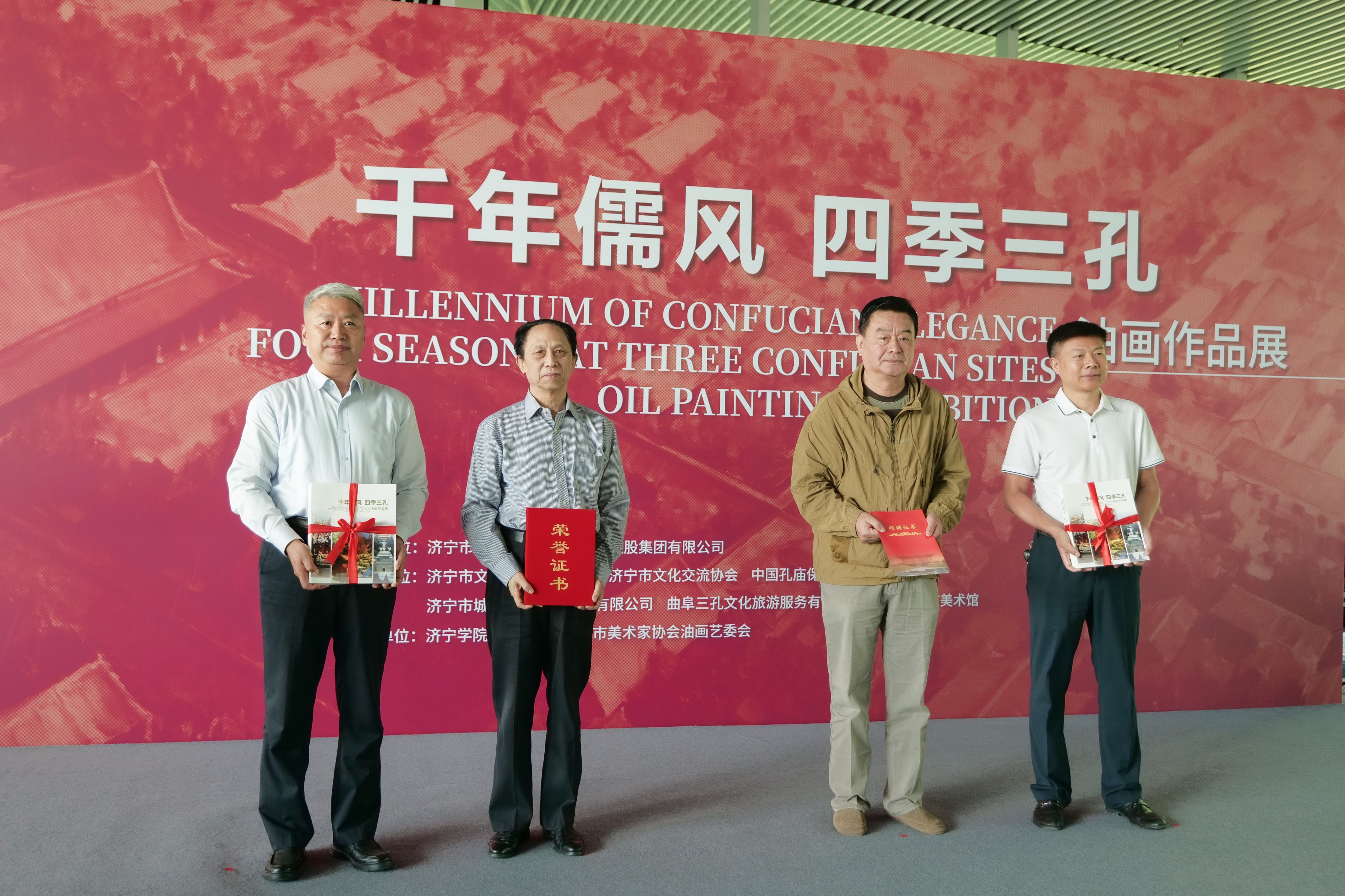9月20日,由济宁市委宣传部、济宁城投控股集团有限公司联合主办,济宁市文化传承发展中心、济宁市文化交流协会策划承办,济宁学院美术学院、济宁市美术家协会油画艺委会协办的“千年儒风 四季三孔”油画作品展在济宁市美术馆隆重开幕。校党委委员、宣传部部长刘克非出席开幕式,美术学院50余名师生共同参加。