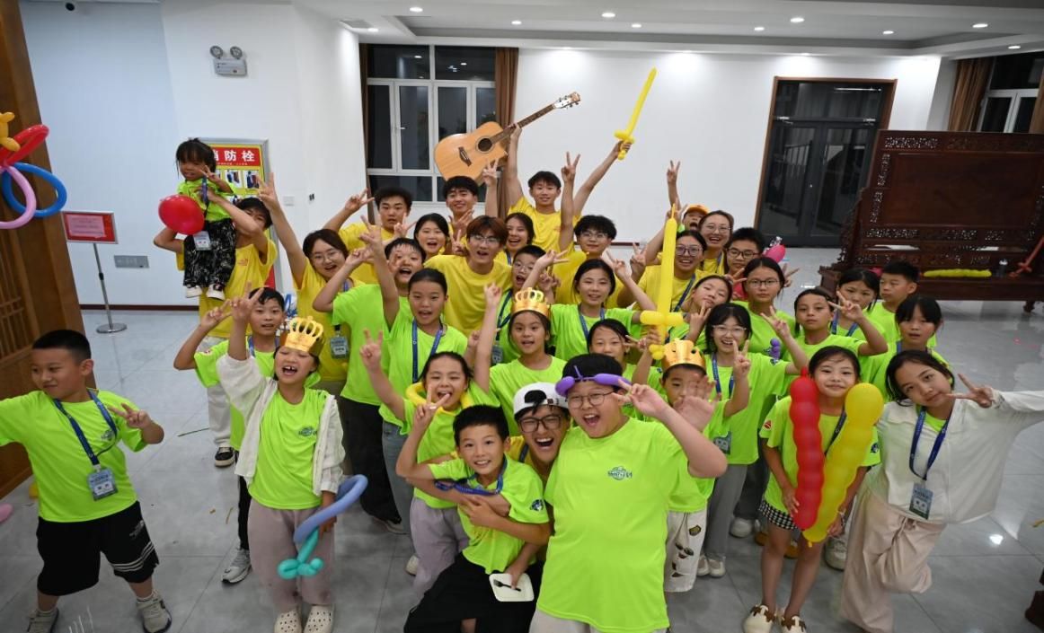 科学星火启迪智慧,专业特色赋能成长。夏令营充分发挥物理与电子学院学科优势,志愿者们打造了妙趣横生的科普课堂。《科学小达人》《浮力幻想》《知识大闯关》《DIY显微镜》等课程,点燃了乡村孩子探索物理世界的热情。“济宁学院研学之旅”,让孩子们漫步大学校园,感受学术殿堂氛围,悄然播下向往高等学府的种子。《爱在礼仪》课程细致传授传统与现代风范,提升修养;“扭扭棒创意工坊”则让想象力在指尖绽放,诞生出灵动艺术之花。趣味排球与激情“撕名牌”活动,不仅锻炼了协作能力与策略思维,更充分释放了青春活力。温馨的“集体生日会”与结营晚会,为孩子们搭建了展示自我的舞台,深化了归属感与集体荣誉感。