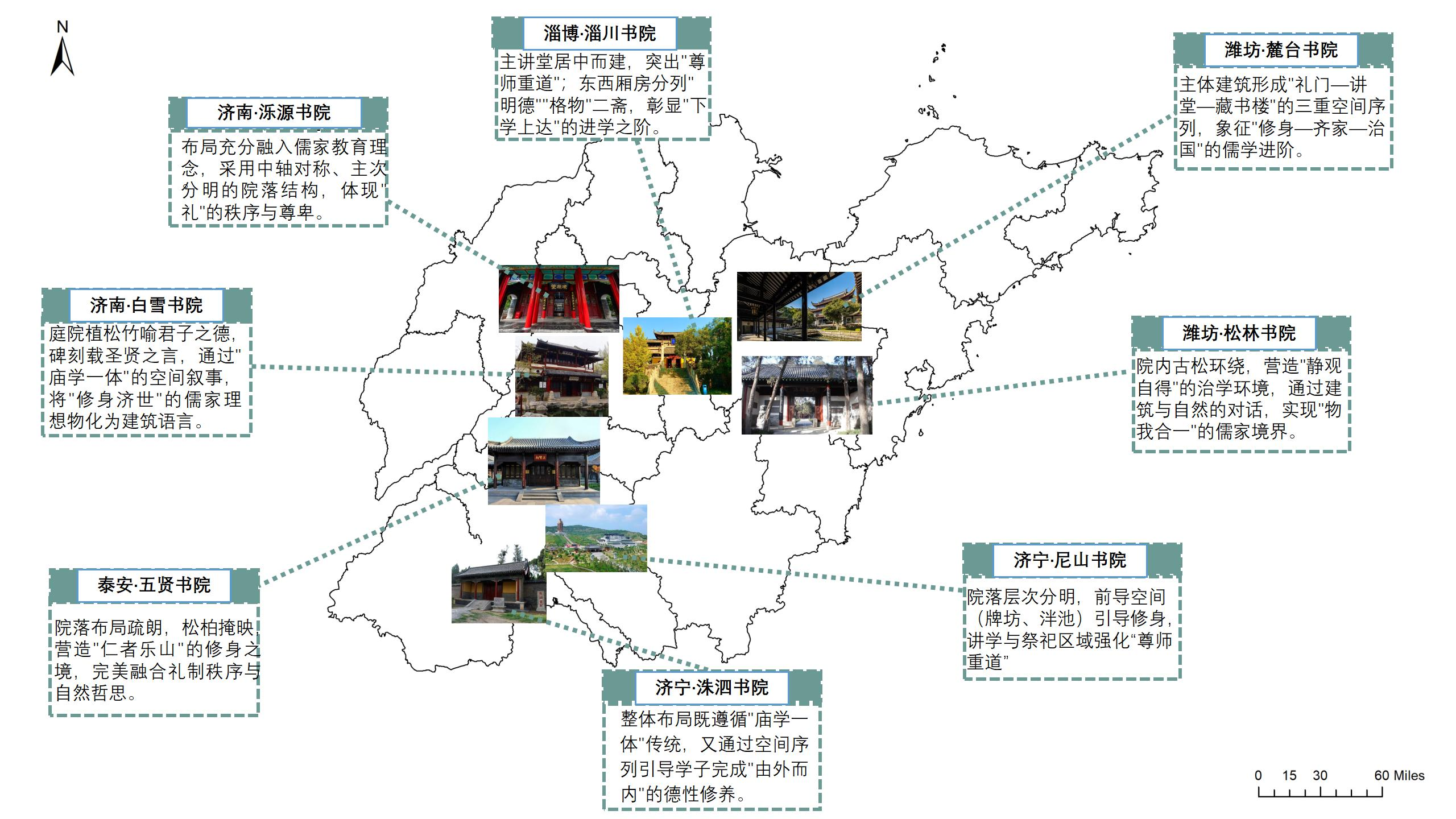 泰安五贤书院内,师生勘察东祠西堂布局,老师解读礼制内涵,学生诵读典故并步测参数,从“讲书台”石刻感受“泰山学派”文武相融学风。济南白雪楼调研中,老师详解景观文化呼应,学生将文化研习与运动体验结合,探寻“诗书传家”意象,解读文武兼修理念。曲阜调研更显“文武双全”特质。洙泗书院内,老师解读“前堂后寝”与“礼乐相成”的契合,学生研学“因材施教”思想,通过动线模拟分析水系引导作用,发现碑林兼具文化传承与室外研学功能。尼山书院中,老师解析“明伦堂”符号意义,学生结合专业从“运动场地+文化传承”角度,解读其对儒家文武兼修理想的具象化表达。