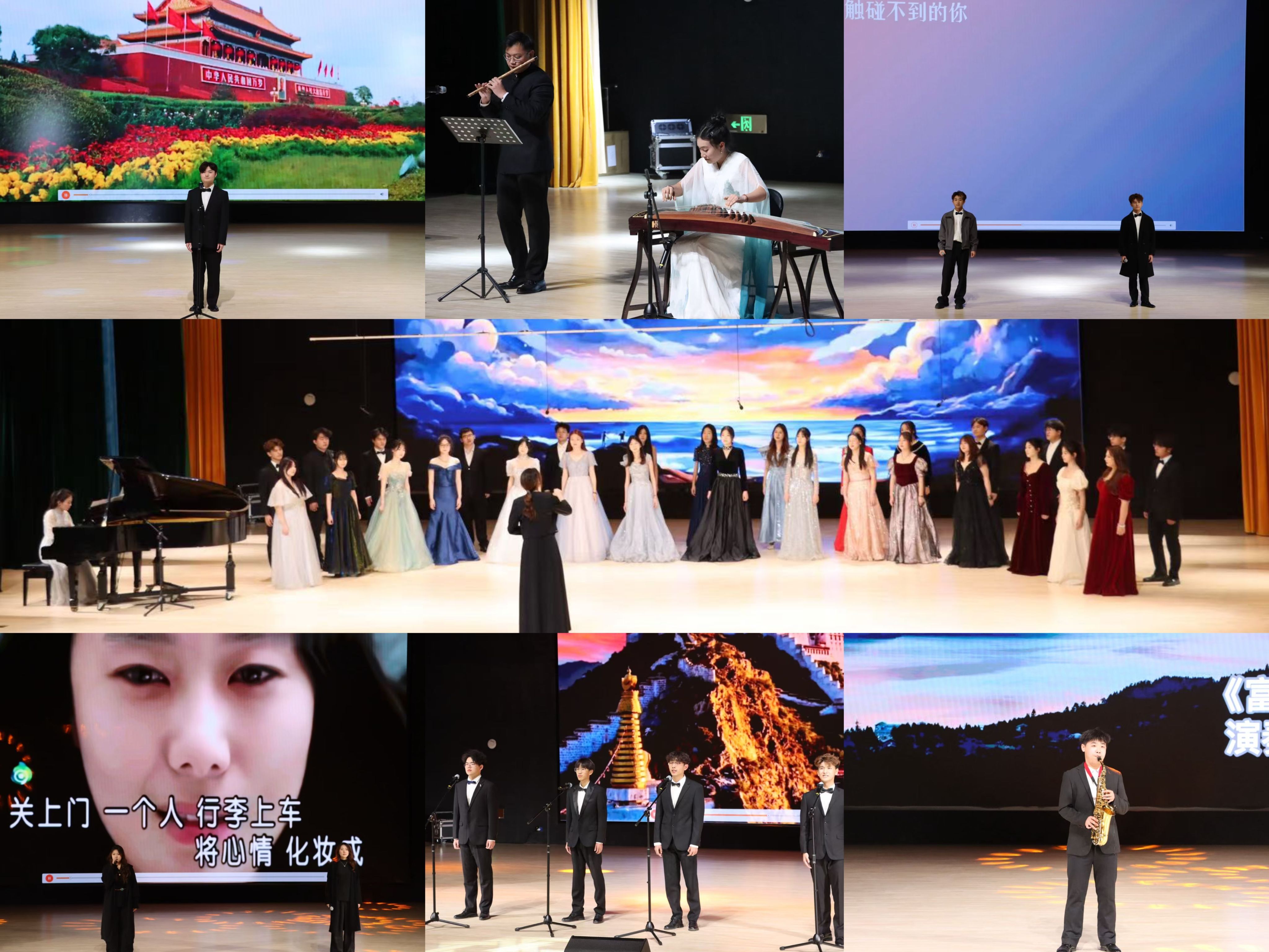 李观帅同学的萨克斯独奏《富士山下》则带领大家穿越至异国风情,其深情的演绎让听众仿佛置身于富士山脚下,感受那份特有的宁静与哀愁。张凌龙同学演唱的《乡音乡情》将展演推向了高潮,这首歌饱含着对故乡的深深眷恋,让在场的每一个人都感受到了家的温暖和乡愁的眷恋。刘亚齐、姜喜山、曹佳乐、孟德烨四位同学的美声合唱《向往》,则以激昂的旋律表达了对美好生活的向往和对未来的无限憧憬,展现了新时代青年的正能量。